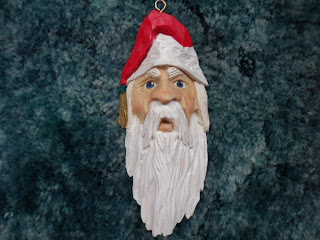 This is one of my Santa ornaments that I like to carve. It was made specifically for my friend. When it arrived he was more than pleased with his new heirloom! Carved in basswood, And done in my usual finishing ways. Painted with acrylic washes and given a coat of Howard feedNwax. Hope you enjoy taking a peek at this guy :)